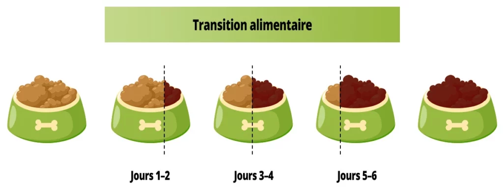 Une transition trop brutale peut entraîner des troubles digestifs (diarrhées, vomissements), une baisse d’appétit, voire des problèmes de santé plus sérieux.